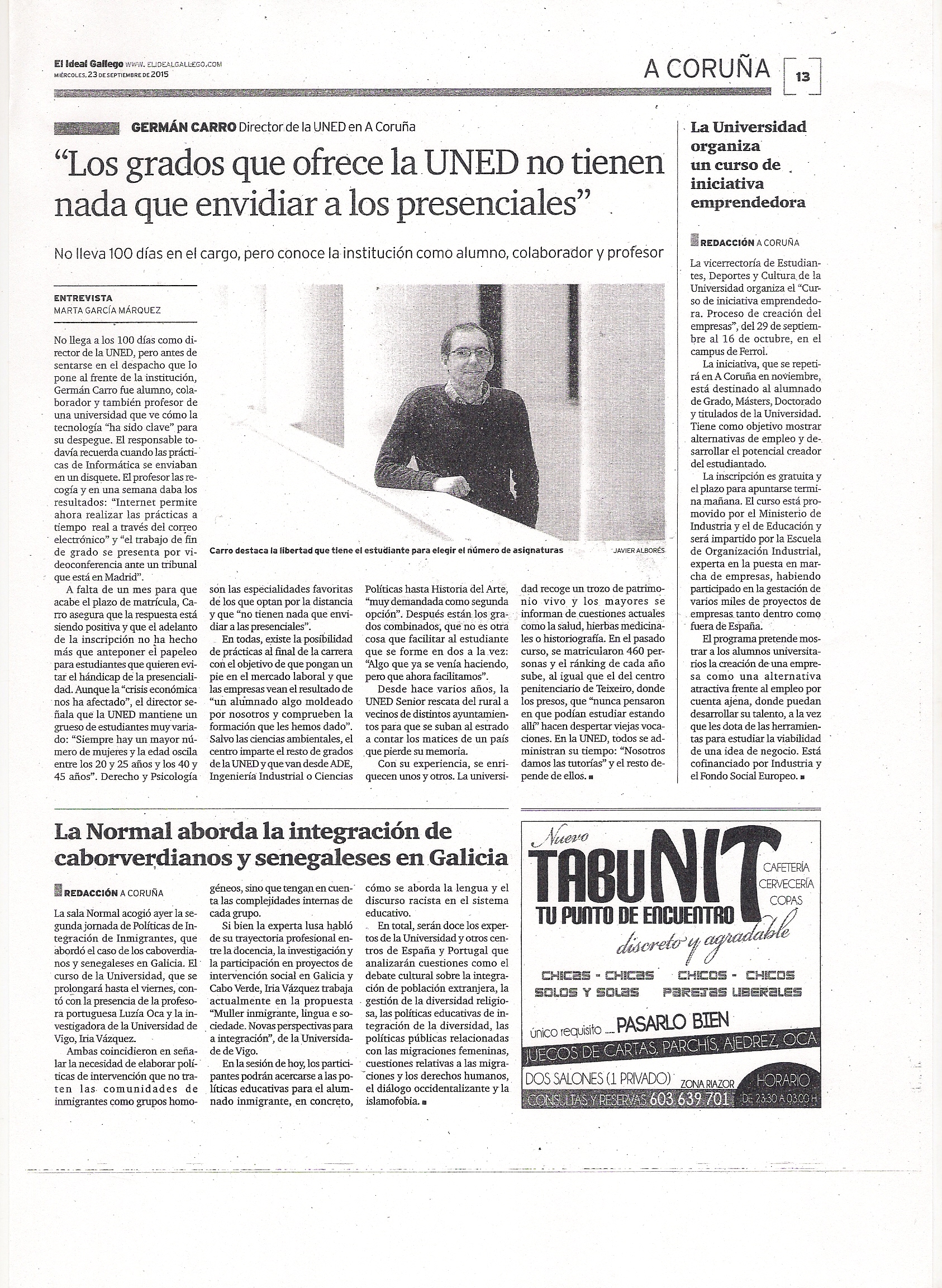 Como sabes, vengo del mundo empresarial y si bien yo he tenido; y tengo; que ir adaptándome al funcionamiento de una institución académica pública como la UNED, y aprender día a día las posibilidades y retos que esto supone, también he intentado dotar al Centro de parte de la motivación, e innovación que traigo conmigo.