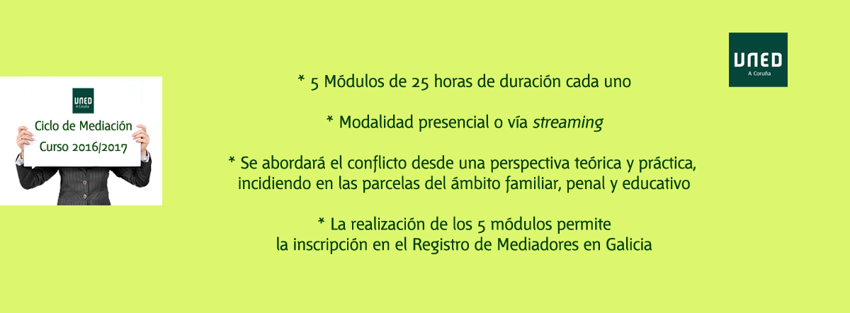 El próximo 14 de octubre comienza una nueva edición del Ciclo de Mediación que presenta la UNED A Coruña.